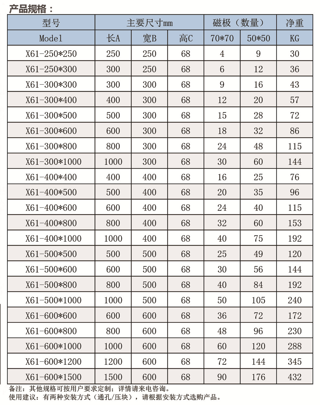 1.金屬切削加工、快速換模(注塑機(jī)、陶瓷干壓機(jī))、磁力起重。
