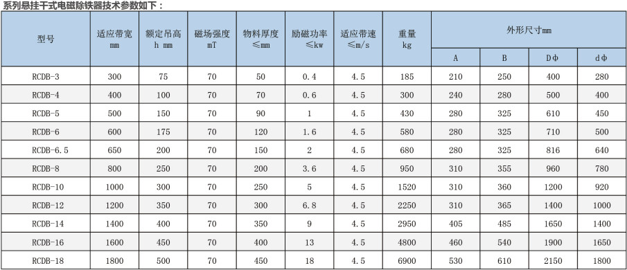 產(chǎn)品介紹:RCDB型自冷盤式電磁除鐵器與PDC系列盤式電磁除鐵器、RCDY系列電磁除鐵器等同。是用于清除粉狀或塊狀非磁性物料中雜鐵的除鐵裝置。其內(nèi)部采用電工專用樹脂澆注,自冷式全密封結(jié)構(gòu),具有透磁深度大、吸力強(qiáng)、防塵、防雨、耐腐蝕等特點(diǎn),在極其惡劣的環(huán)境中仍能可靠運(yùn)行。