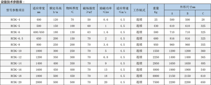 產(chǎn)品介紹:RCDG系列干式自冷電磁除鐵器內(nèi)部線圈采用絕緣性等級(jí)高,耐熱性能好的紗包線繞制而成,適用于輸送帶上任何物料的除鐵,對(duì)各種型號(hào)的破碎機(jī)、磨機(jī)起著可靠的保護(hù)作用。磁路采用計(jì)算機(jī)模擬設(shè)計(jì),透磁深度大;結(jié)構(gòu)簡(jiǎn)單合理,維護(hù)方便;溫升低,磁場(chǎng)強(qiáng)度波動(dòng)幅度小。