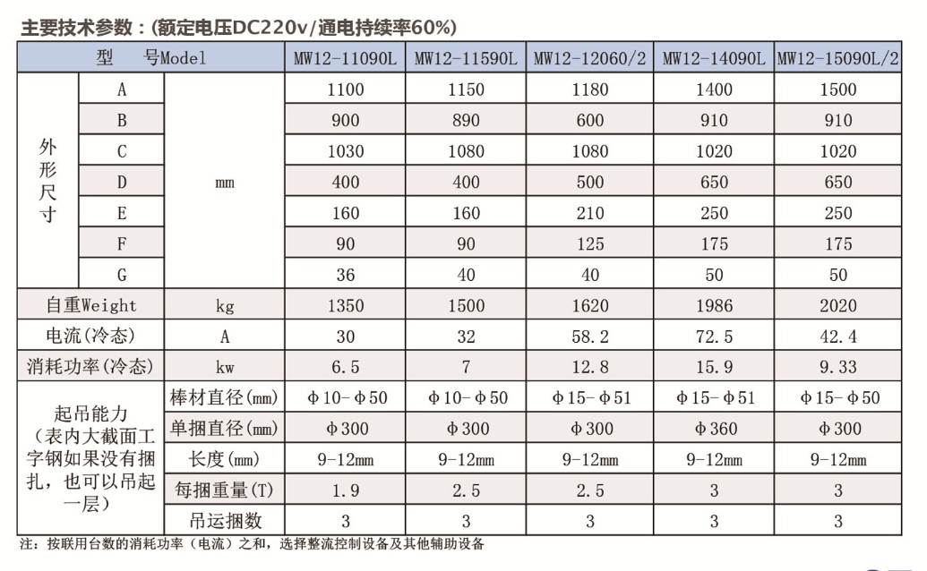 MW12吊鋼帶起重電磁鐵 產(chǎn)品介紹:主要用于冷軋和熱軋板廠吊裝各類鋼卷。 適用于吸掉鋼帶卷(600℃以內(nèi)使用),分為垂直吊運(yùn)型和水平吊運(yùn)型。和傳統(tǒng)的鋼帶卷吊具比較,鋼帶卷用起重電磁鐵更加安全可靠,而且不對(duì)對(duì)鋼帶卷表面產(chǎn)生任何傷痕。