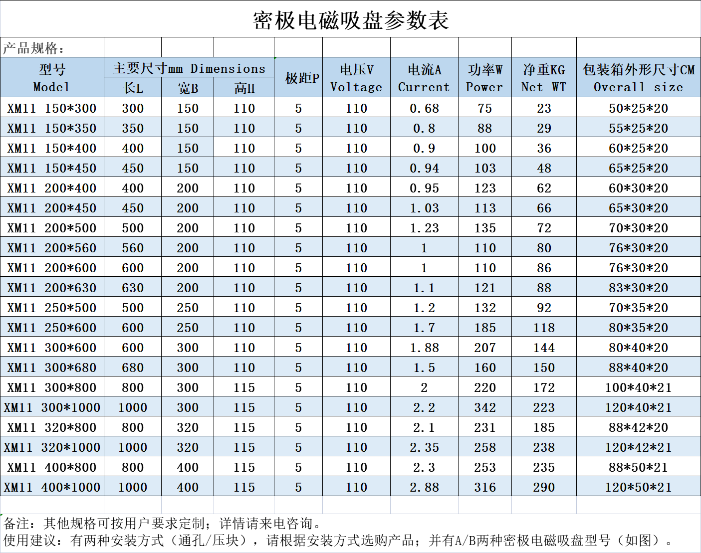 使用建議:當(dāng)用戶選購產(chǎn)品使用時(shí),可以選購 橫向密極電磁吸盤 和 縱向密極電磁吸盤 。