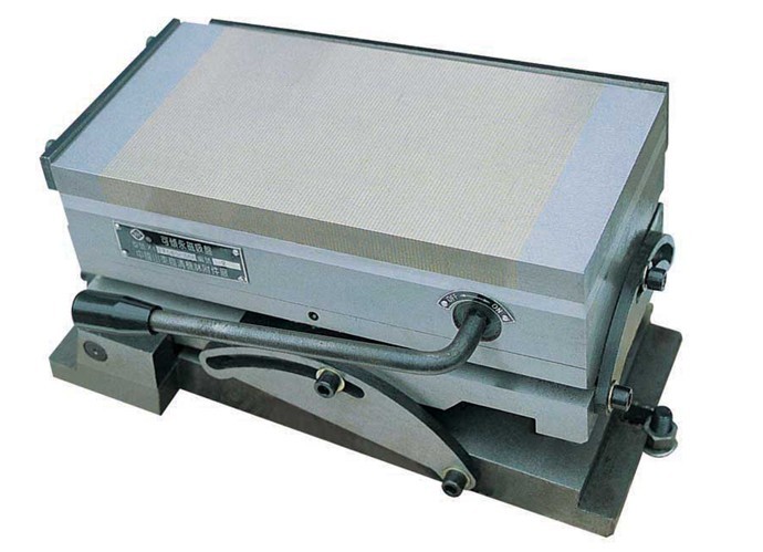 Product performance : Double-tilt precision permanent magnet chuck is suitable for precise grinding of front, rear or left slope of single-sided angle or compound angle on various surface grinders and EDM machines. The process has been specially treated to make the adjustment more accurate. Selection of high-quality materials, strong suction, small remanence, uniform distribution of magnetic force. The plane accuracy of the magnetic surface remains unchanged when switching on/off. The arrangement of magnetic poles is only 1.55 mm, which can hold smaller parts.