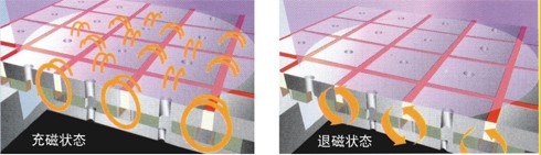 4.多磁路電控設(shè)計(jì),0.1—1s充退磁(視磁盤(pán)大小而定),磁力可調(diào),充磁后無(wú)需繼續(xù)供電,可通過(guò)快速接頭卸下連接電纜,磁盤(pán)可自由旋轉(zhuǎn)(亦可提供導(dǎo)電滑環(huán)機(jī)構(gòu),無(wú)需插拔快速接頭);